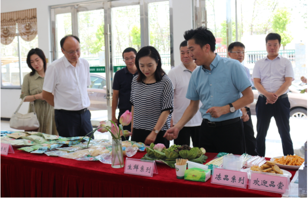 8月7日,湖北省商務(wù)廳黨組成員、副廳長李曉燕一行在荊州市商務(wù)局黨組成員、副局長李木子,洪湖市市委常委、市政府黨組成員周智虎,市政府黨組成員陳濤的陪同下,深入湖北華貴食品集團(tuán)調(diào)研洪湖蓮藕區(qū)域公用品牌建設(shè)。